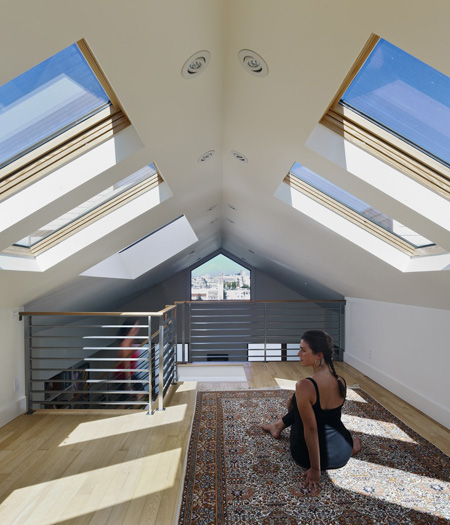 在欧美,许多家庭都会有阁楼,每个家庭如果自己有一幢房屋,那么尖顶的设计令他们的顶层成为阁楼,阁楼通常楼高比较小,或者楼层呈中间高,两边低,有斜天窗。空间虽然比较狭小,但他们非常注意地在每个阁楼都会开一个天窗,因为天窗是空气流通的关键设计,也是人与自然沟通的重要渠道。